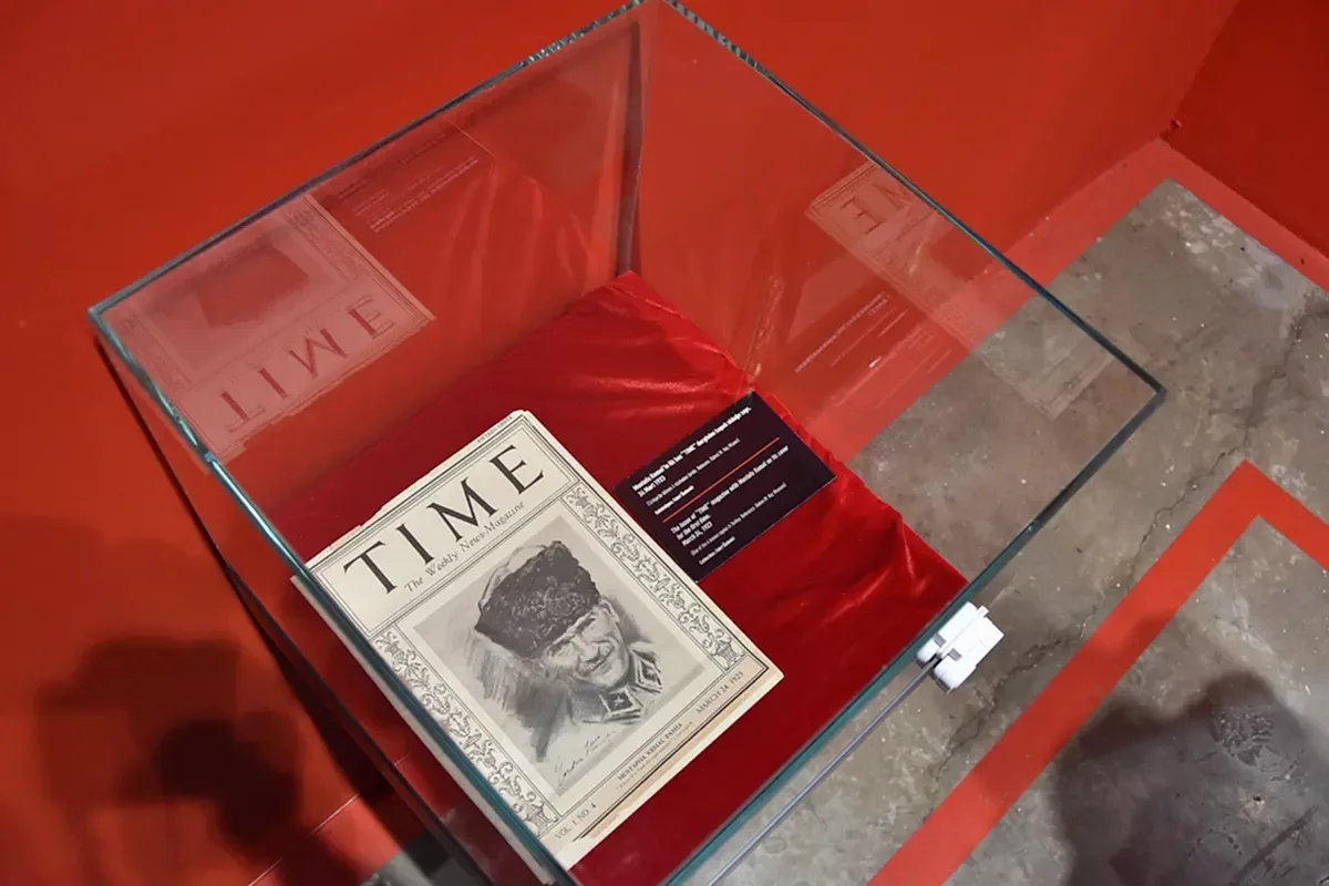 “Ve Mavi Gözleri Çakmak Çakmaktı” Mustafa Kemal Atatürk Sergisinde; Gazi Mustafa Kemal Atatürk’ün yaşamı ve liderlik yolculuğunu yansıtan yayımlanmamış fotoğraflar, kişisel eşyalar ve tarihi belgeler incelendi. Sergide Mustafa Kemal’in Atatürk'ün TIME dergisine kapak olduğu sayının dört orijinal baskısından bir tanesi de yer alıyor.