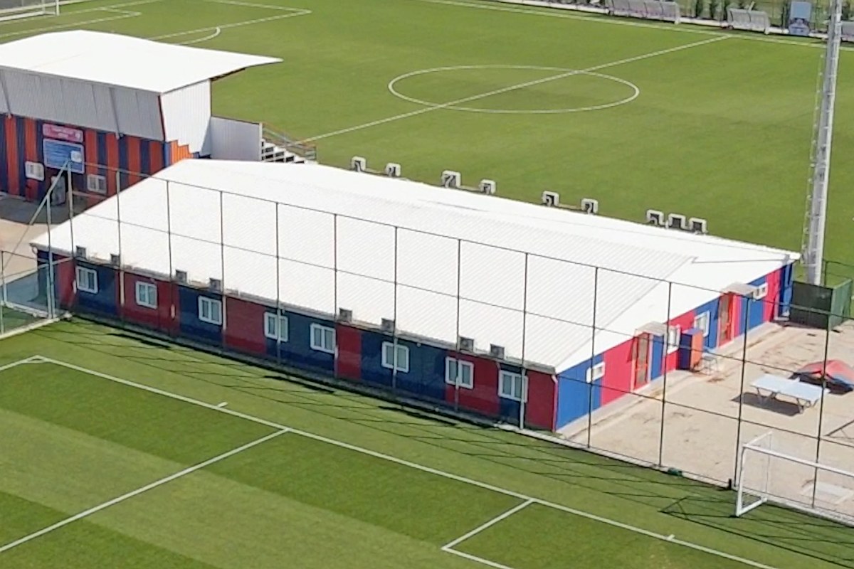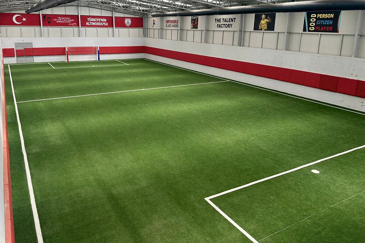 980 metrekare ağır çelik konstrüksiyon yapı. Sentetik Çim. Net 20x30 m