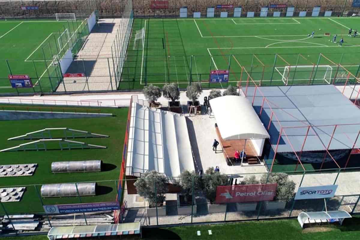 8 adet futbol sahası – 30.000 m2 doğal çim + 26.000 m2 sentetik çim = Toplam 56.000 m2 futbol oyun alanı