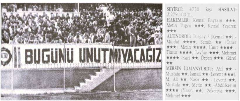 İzmir dışında üniversite tahsilimi yapıyordum. Maçlara gelemediğim yıllardı ama takip ediyordum. Altay yenilgisinden sonra şampiyonluk şansımız zayıflamıştı. Artık bu yarışta Altay ve Mersin İ.Y.’nun baş başa kalacağı anlaşılmıştı. Vize sınavlarından sonra İzmir’e tatile gelmiştim ve soluğu A.Ordu – Mersin İ.Y.maçında alıyordum.