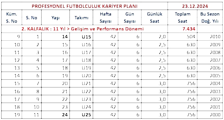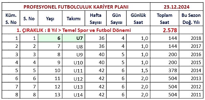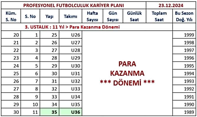 Şimdi ben sizler ve çocuklarınız için bir “6 Yaştan 36 Yaşa Profesyonel Futbolculuk Kariyer Planı Kılavuzu” yaptım, aşağıda sunuyorum..